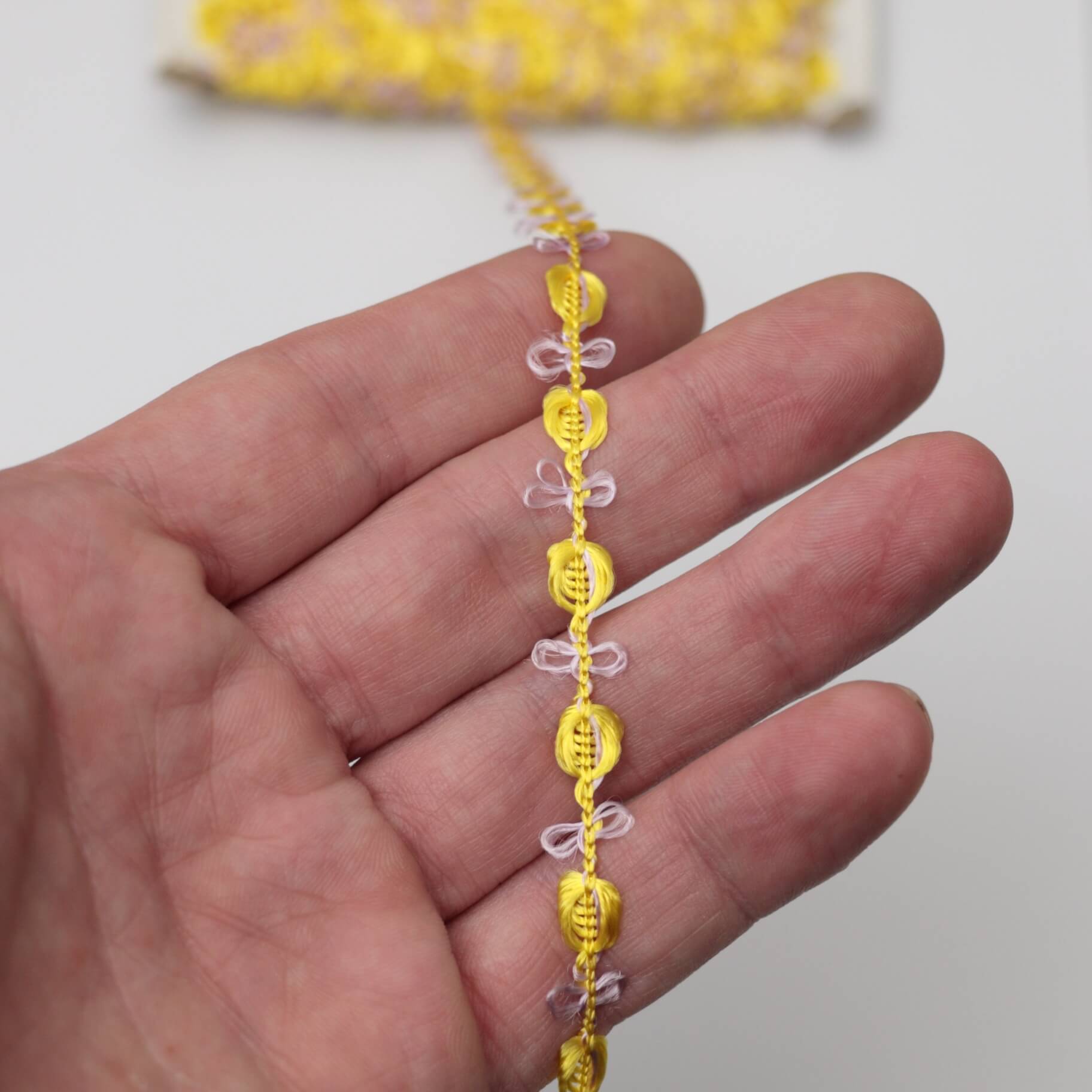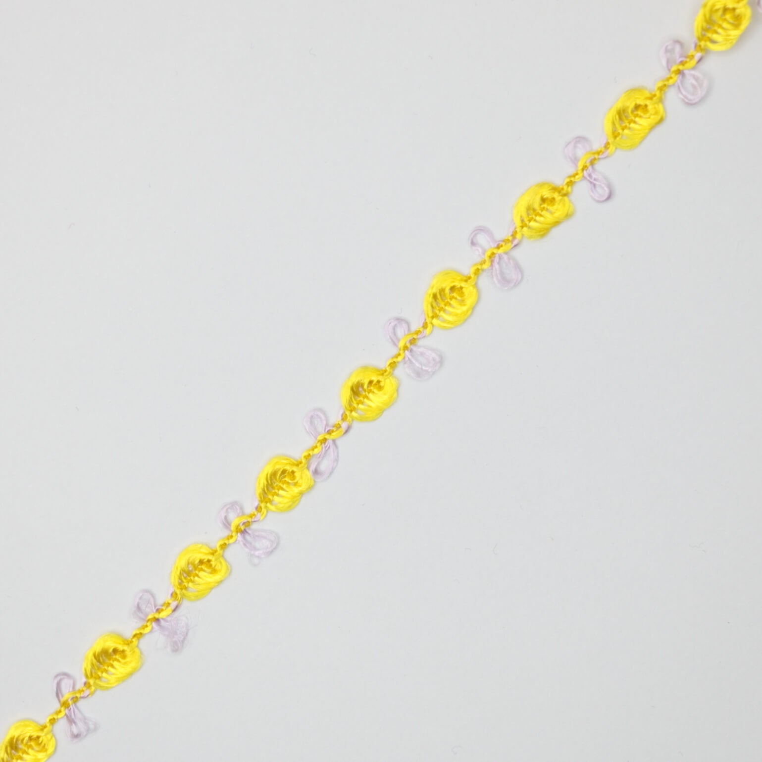10mm Yellow with Lilac Silky Rose Lace Trim 3m