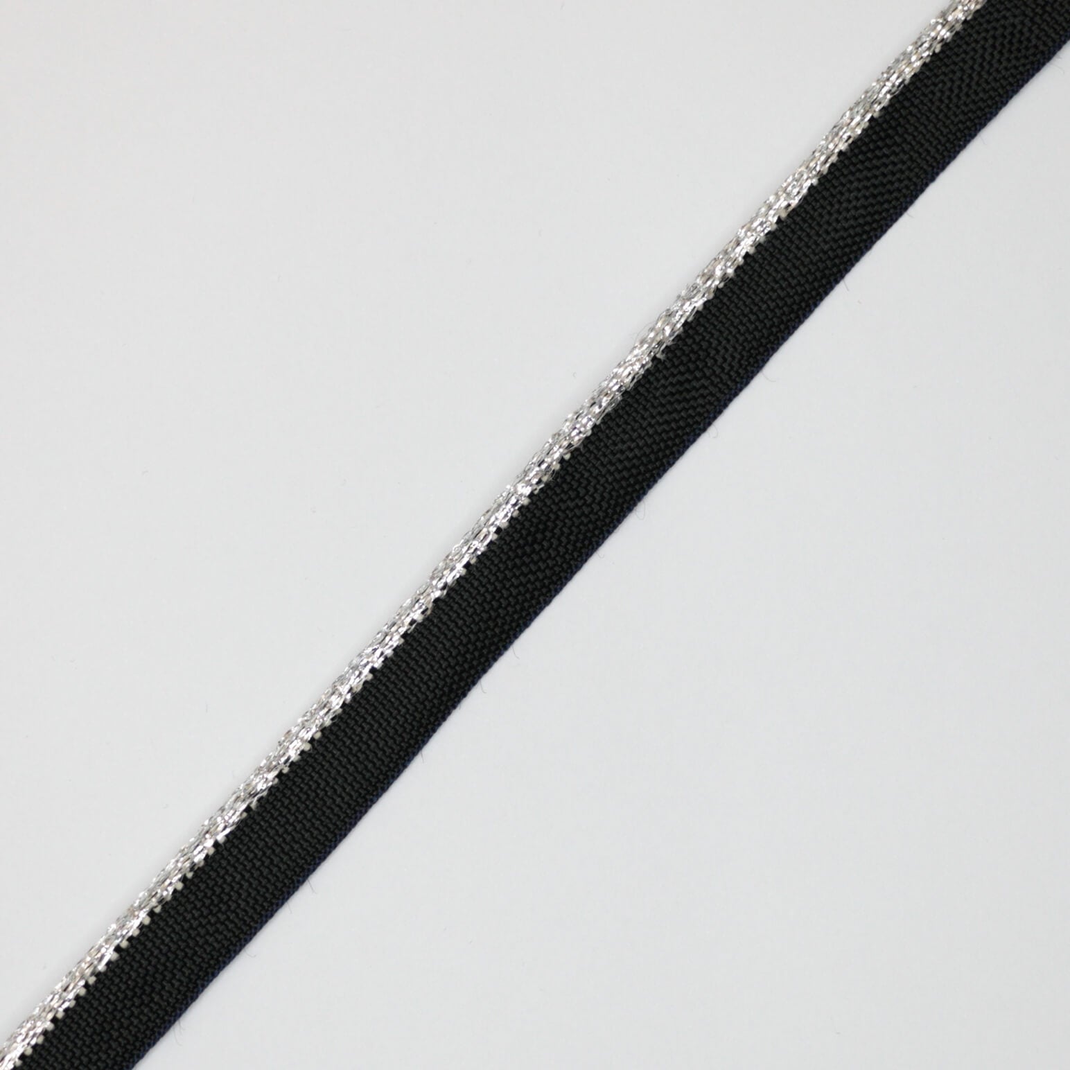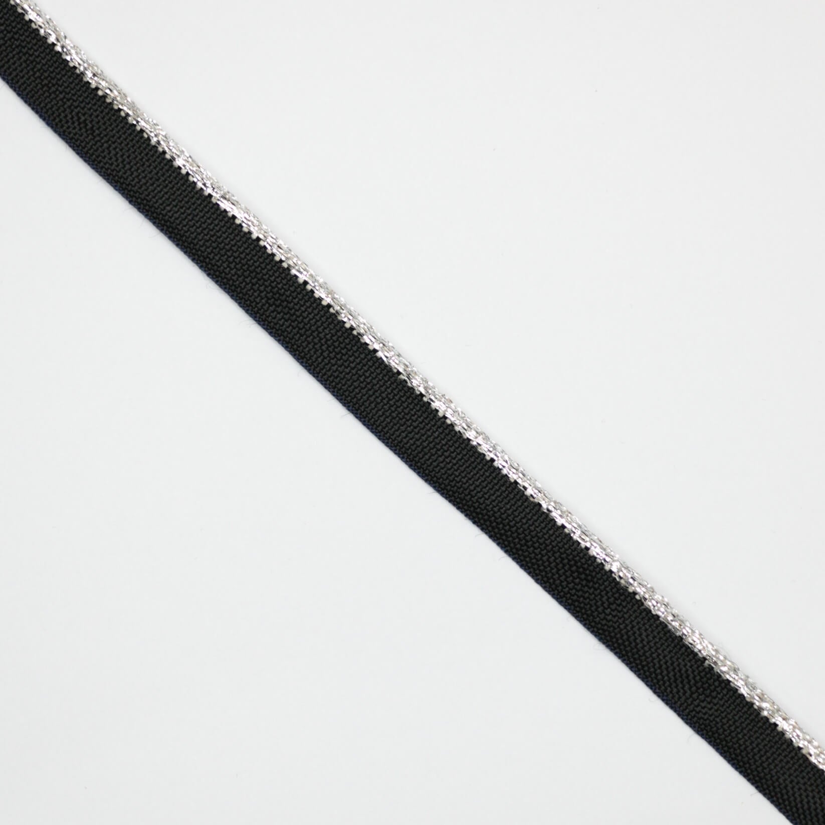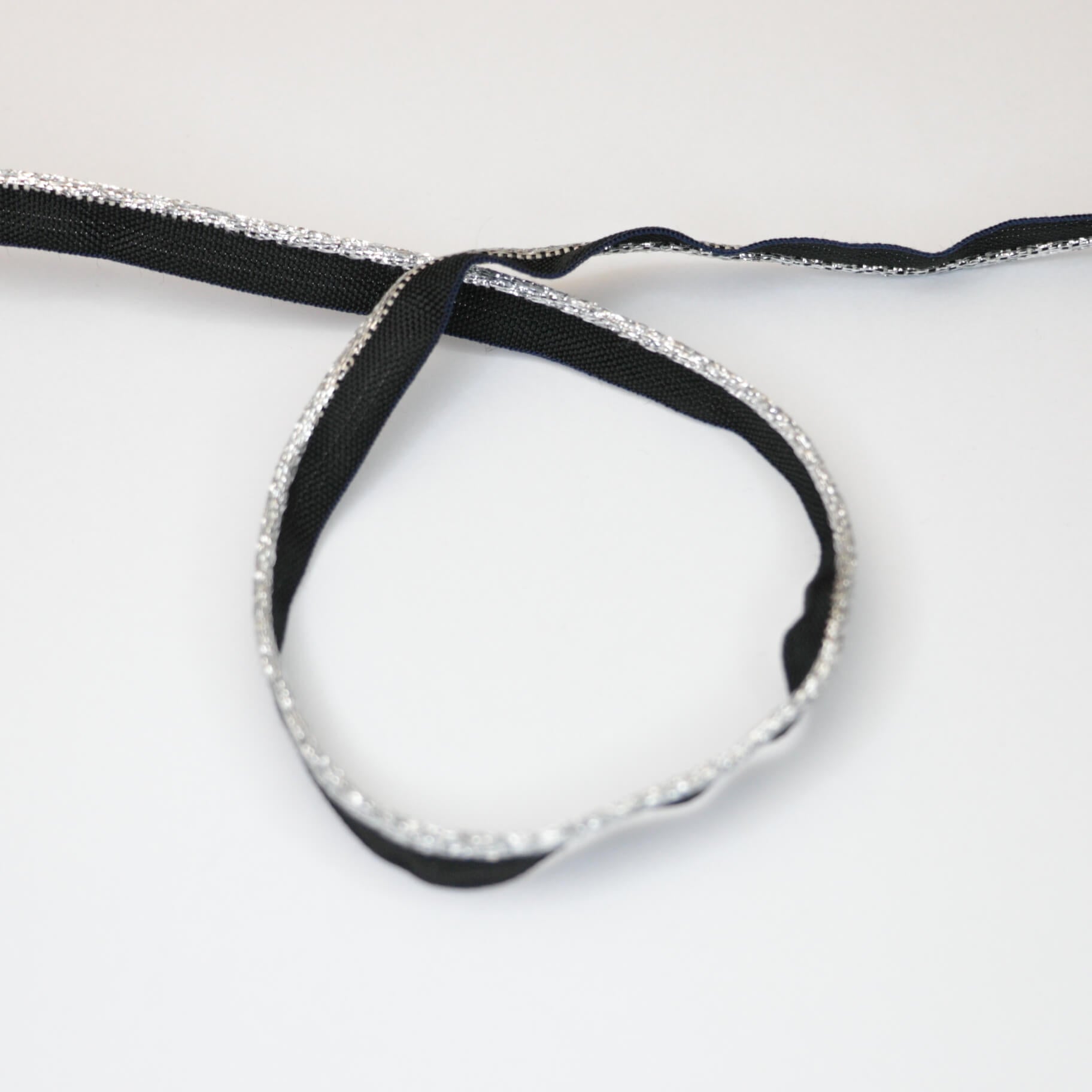11mm Black Piped Cord with Metallic Silver Edge Trim 2m