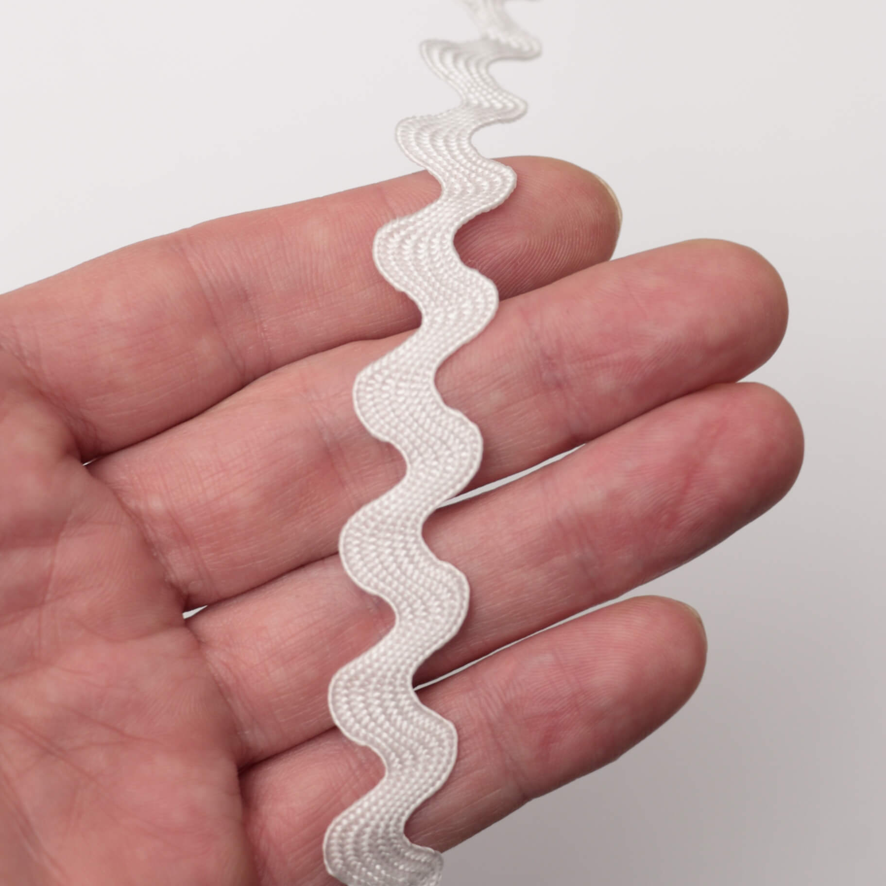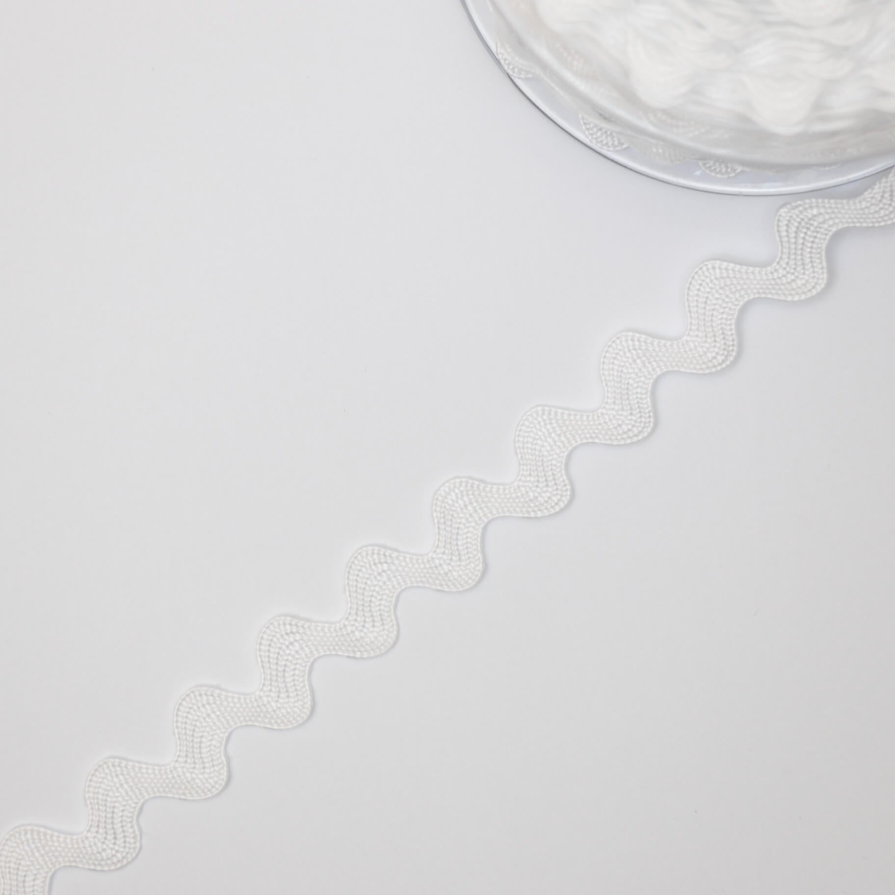 Elevate your sewing projects with this substantial ric-rac trim, featuring bold 13mm scallops in crisp white. The generous width makes it ideal for hemming, edging garments, and adding decorative detail to soft furnishings and accessories. Sold by the metre for precision ordering. A versatile notions essential for dressmakers and home sewers seeking professional-grade finishing touches.