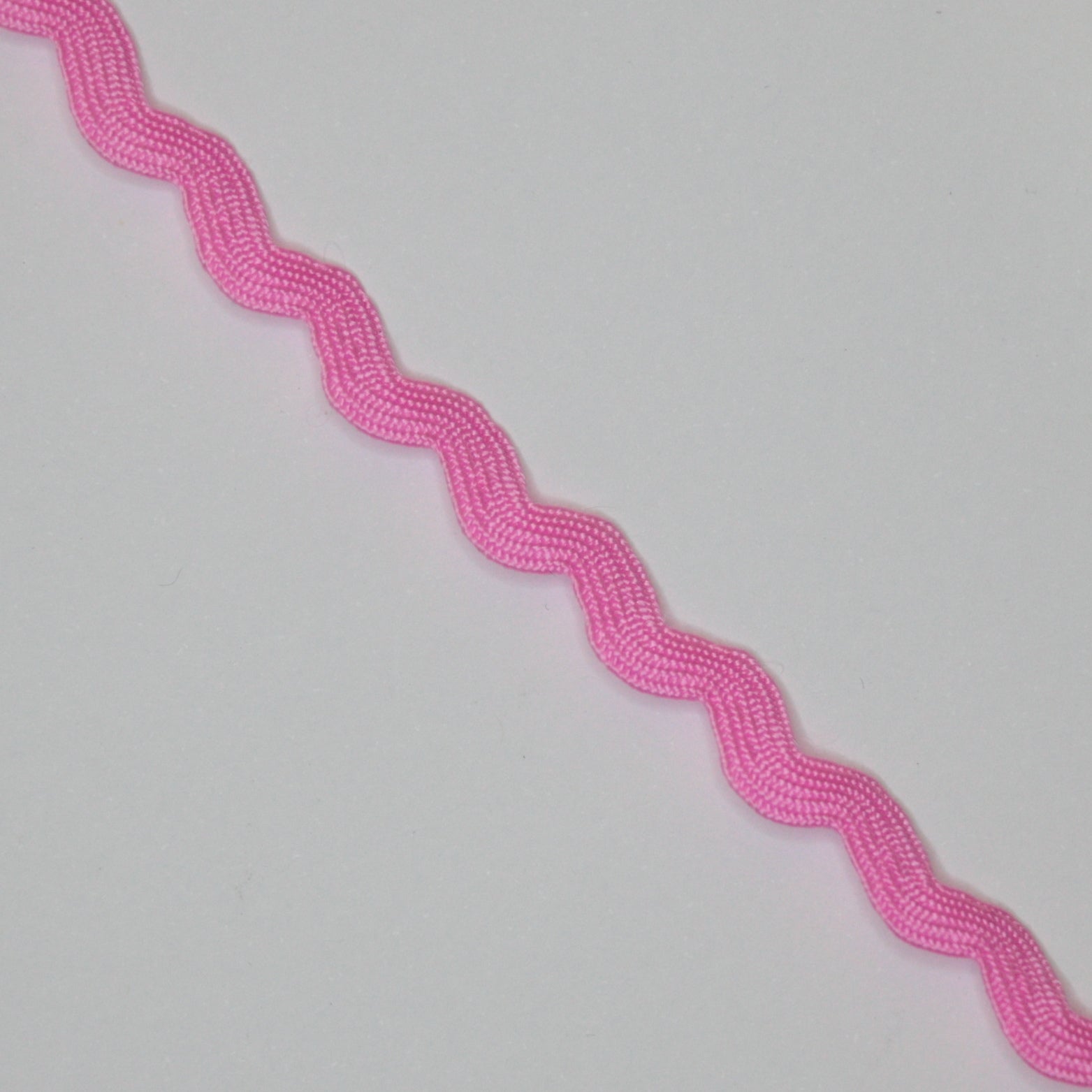8mm Pink Ric-Rac Trim decorative ric-rac trim in a vibrant pink shade, ideal for adding playful detail to garments, soft furnishings, and craft projects. This 3-metre length features the classic zigzag weave pattern at 8mm width, making it versatile for binding edges, embellishing seams, or creating distinctive trims on children's clothing, quilts, and home décor pieces. Easy to apply by hand or machine, it coordinates well with a range of fabrics and colour palettes. A practical staple for sewers and makers seeking quality haberdashery notions.