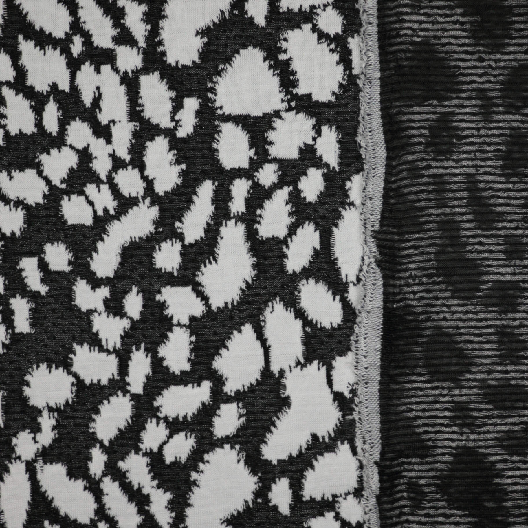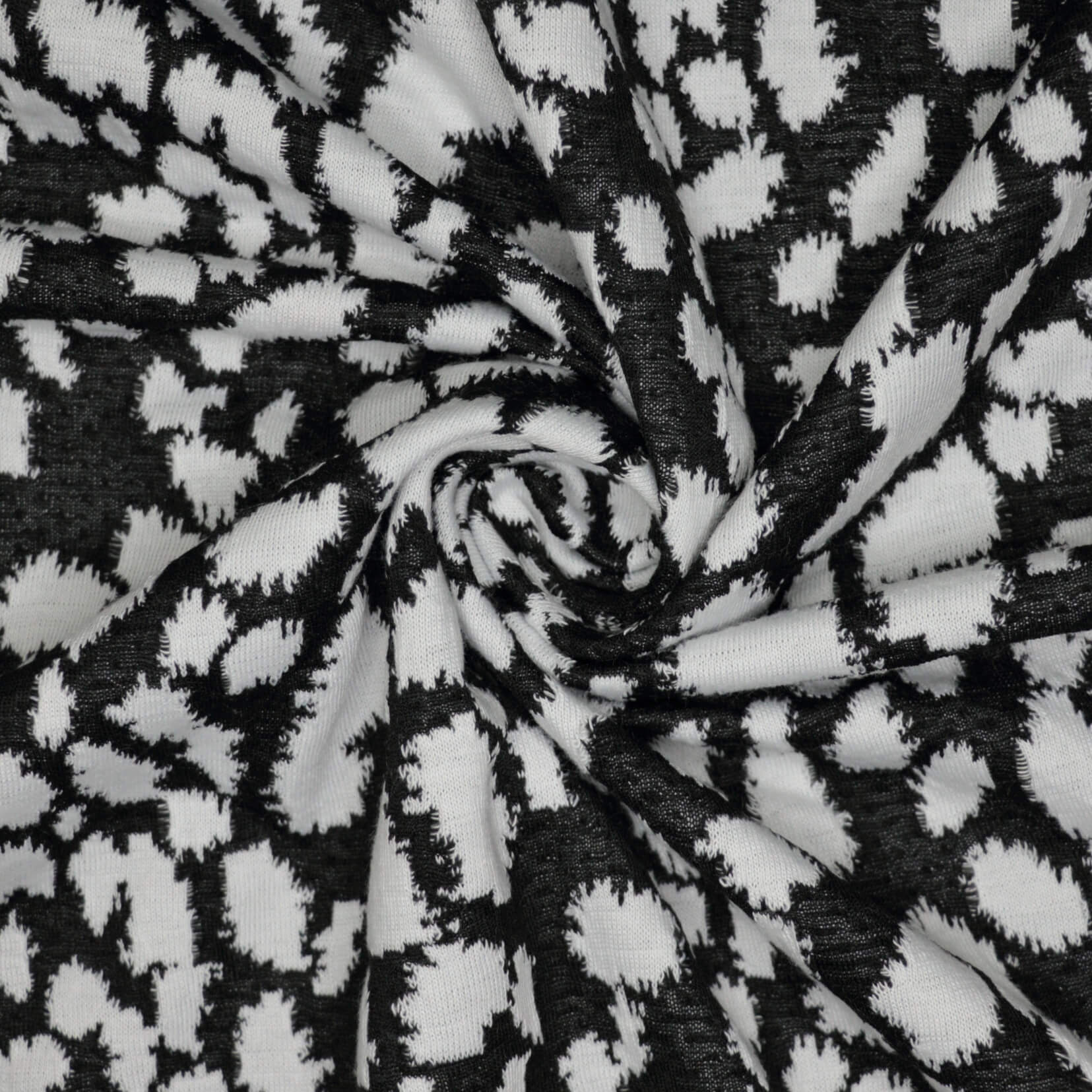 Our B&W spot knit jacquard jersey is a versatile knit fabric combining classic spot jacquard patterning with the comfort of jersey construction. This two-way stretch material offers excellent recovery and drape, making it ideal for fitted garments, dresses, and layering pieces. The soft hand feel ensures comfort against the skin, whilst the structured jacquard weave maintains shape and definition. Perfect for sewers seeking a premium knit with visual interest and practical performance.