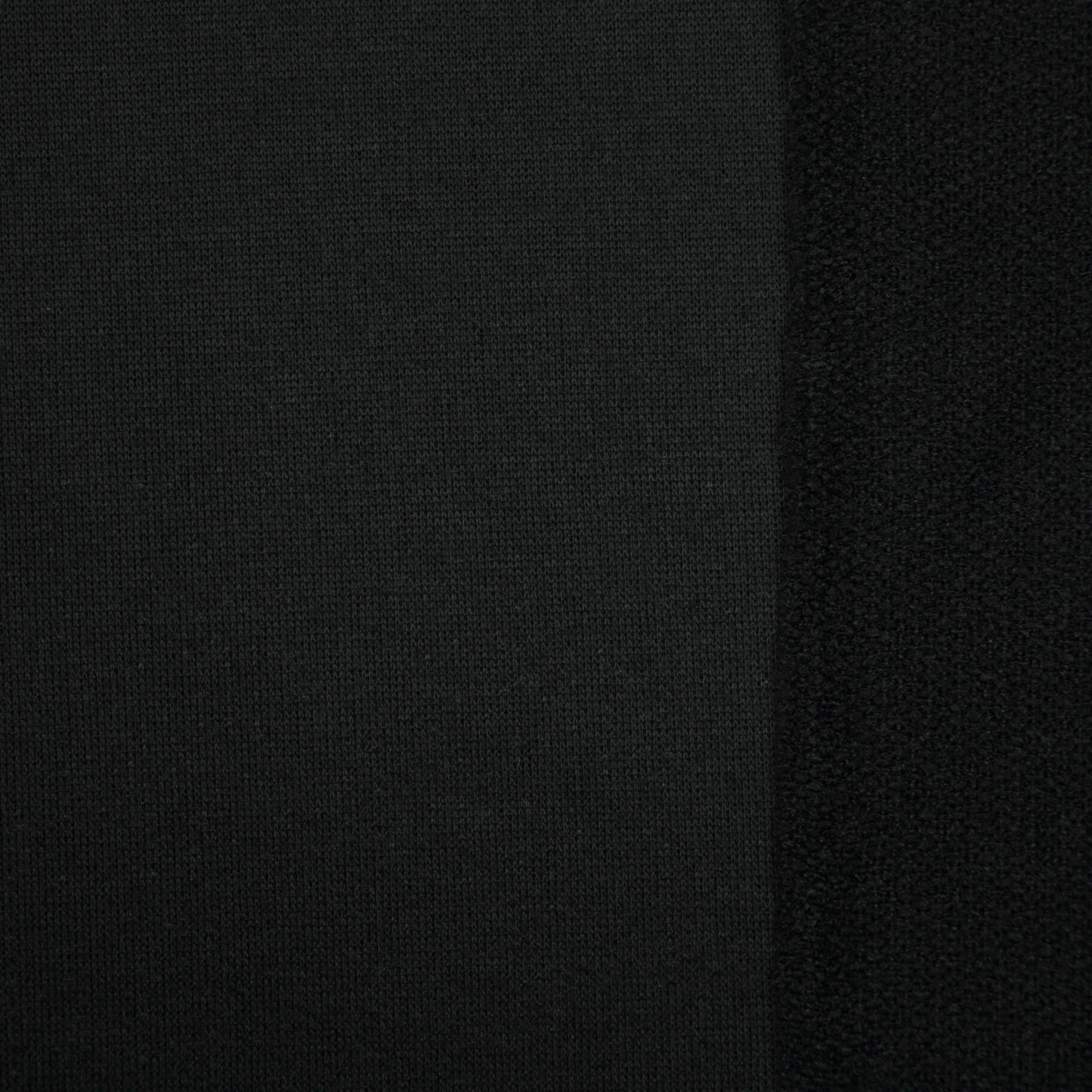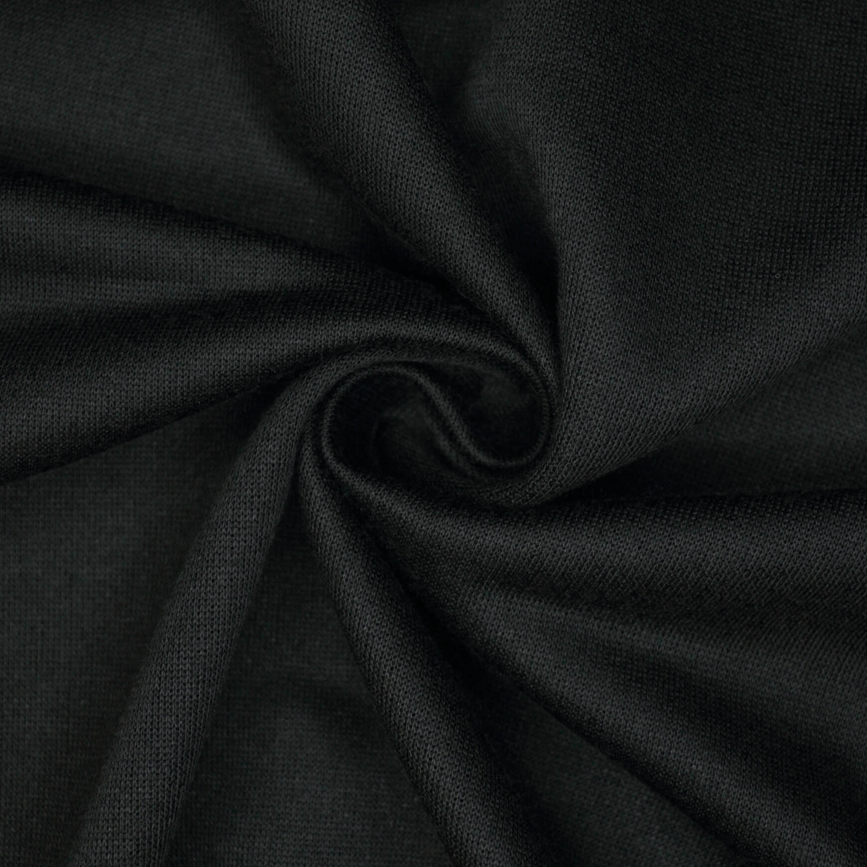 Our black loopback jersey offers a distinctive looped reverse texture. This versatile fabric combines softness with subtle give, making it ideal for contemporary garments that require comfort without excessive stretch. The non-stretch construction ensures stable drape and shape retention, whilst the brushed loopback surface provides warmth and tactile appeal. Perfect for sweatshirts, hoodies, and relaxed-fit pieces where structure and comfort converge.