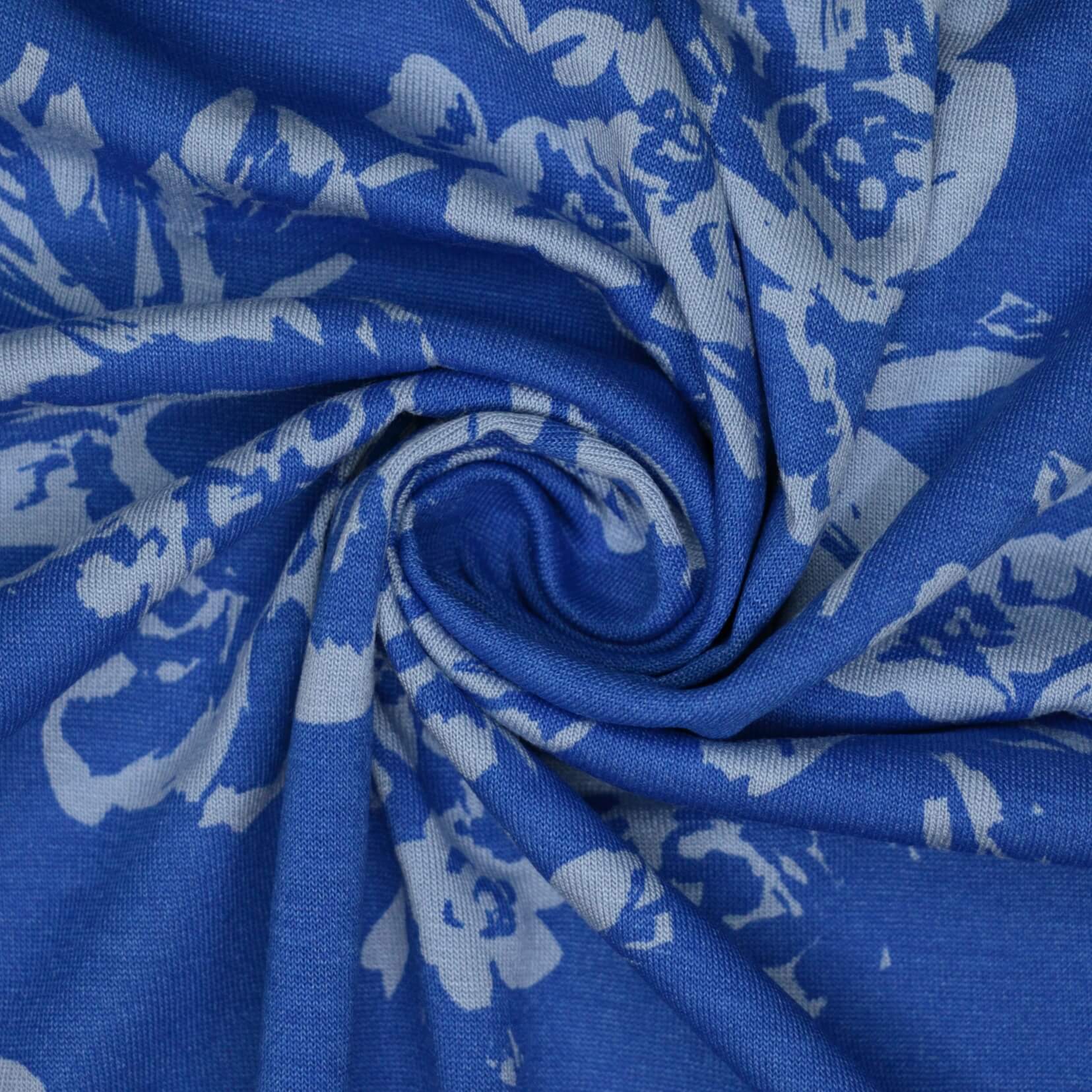 Blue Floral Jersey per/metre