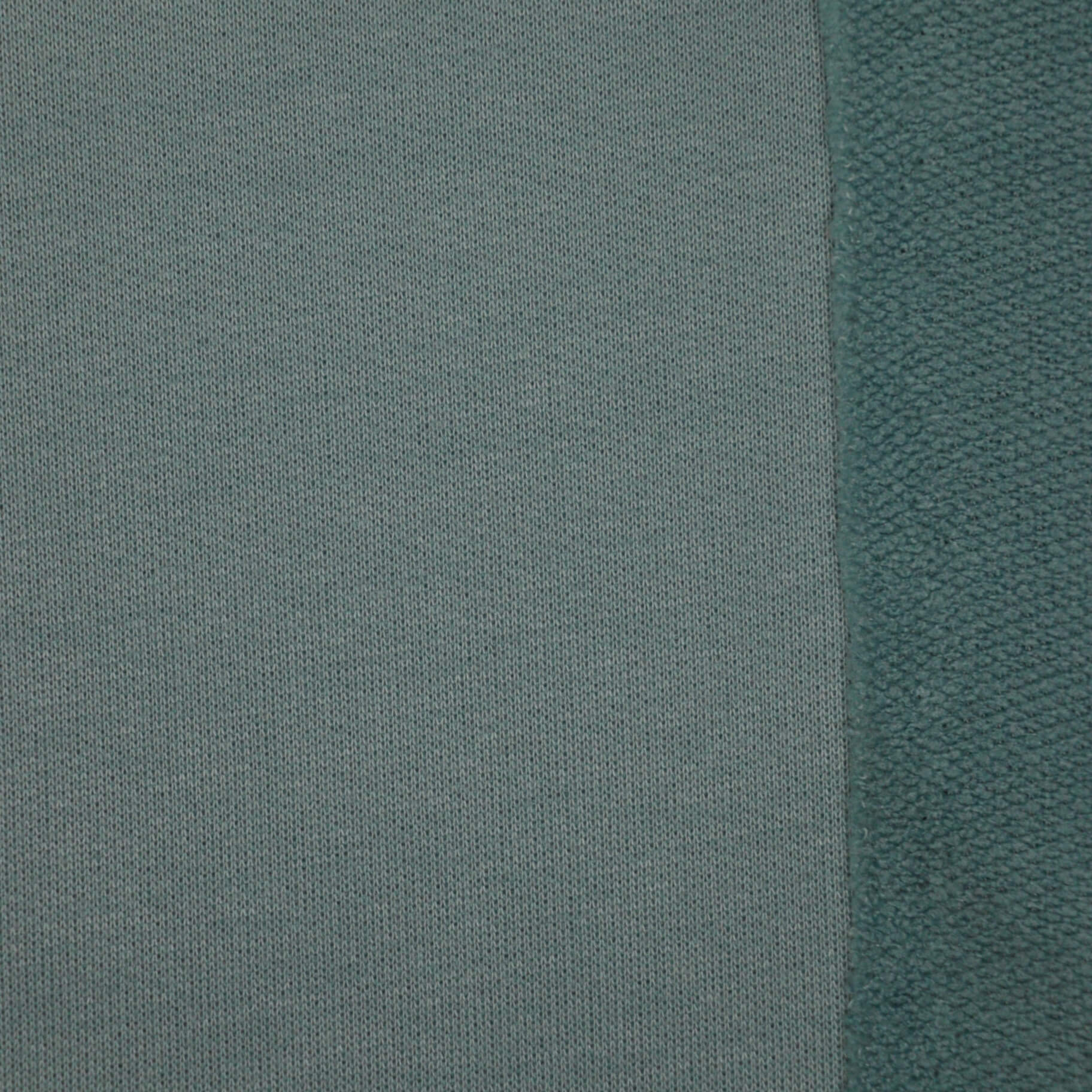 Our duck-egg blue loopback jersey is a versatile loopback jersey in a sophisticated duck-egg blue, ideal for comfortable everyday wear. The soft, brushed reverse provides warmth and tactile appeal, whilst the two-way stretch ensures freedom of movement and excellent recovery. Perfect for crafting relaxed tops, hoodies, and casual garments that maintain their shape through wear and washing.