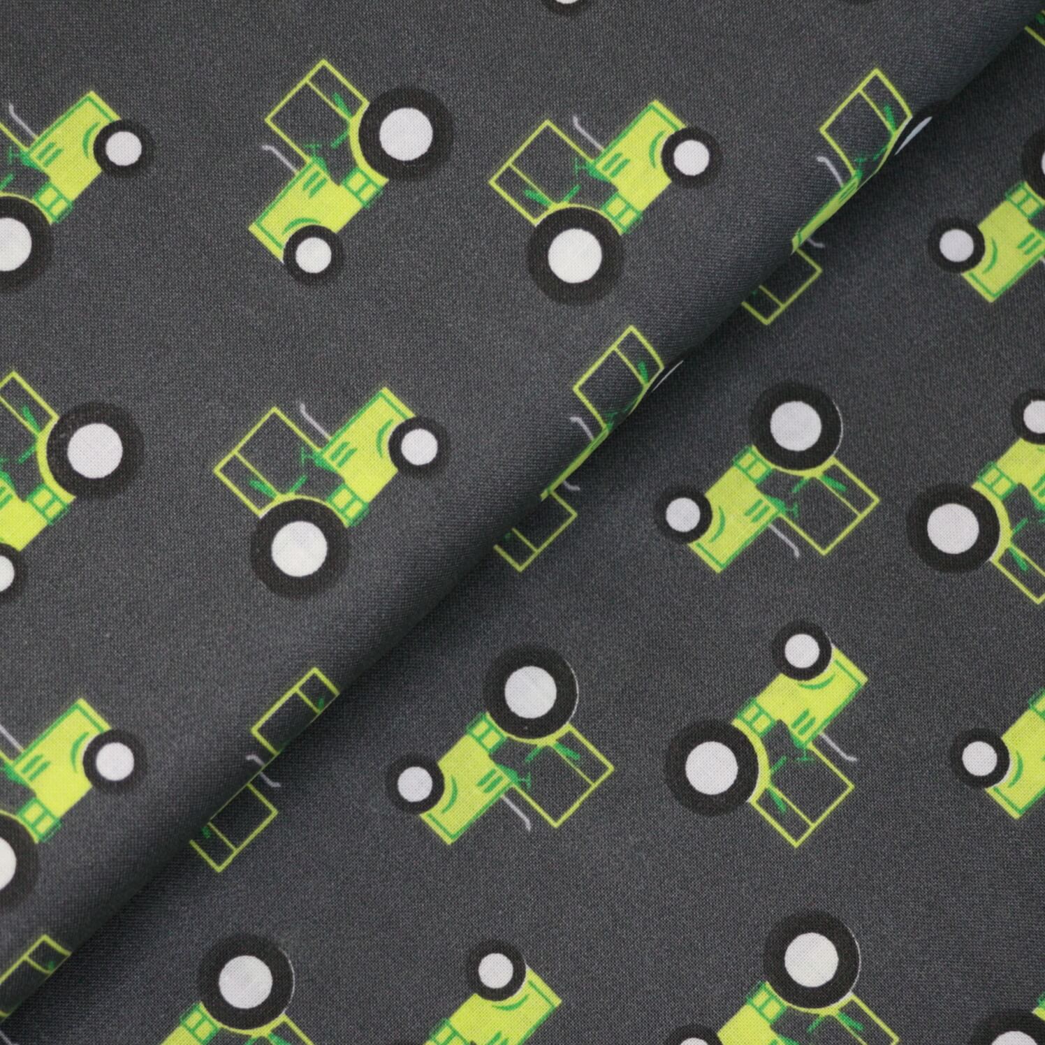 This soft, woven 100% cotton fabric features a charming novelty print of green tractors set against a dark grey background. Non-stretch and of high-quality weave, it is ideal for creating durable and comfortable children’s clothing or accessories. Its subtle design combines playful appeal with practical use, making it perfect for expert sewing projects that require both style and reliability.