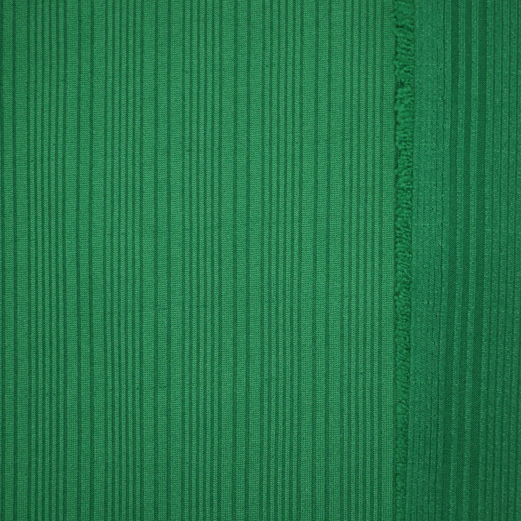 This green variegated ribbed Jersey fabric offers a soft touch combined with four-way stretch, providing exceptional flexibility and comfort. Ideal for garments that require both contour and movement, its ribbed texture adds subtle depth and visual interest while maintaining durability and resilience. Perfect for expert sewists seeking a versatile knit fabric that adapts effortlessly to various design needs.