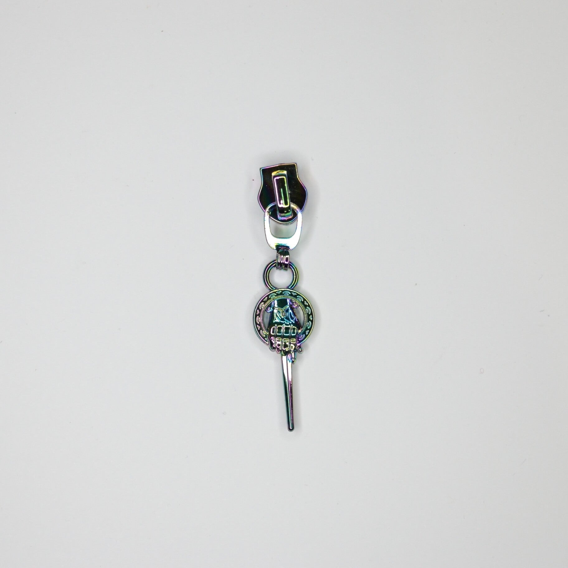 Rainbow Hand of the King #5 Zipper Pull Add a touch of fandom to your everyday carry with this decorative zipper pull, inspired by iconic fantasy imagery. The vibrant rainbow gradient brings colour and personality to bags, pouches, and jackets. Durable construction ensures reliable performance on zips and sliders. Perfect for crafters personalising projects or fans seeking subtle, wearable tributes. A practical accessory that doubles as conversation starter.