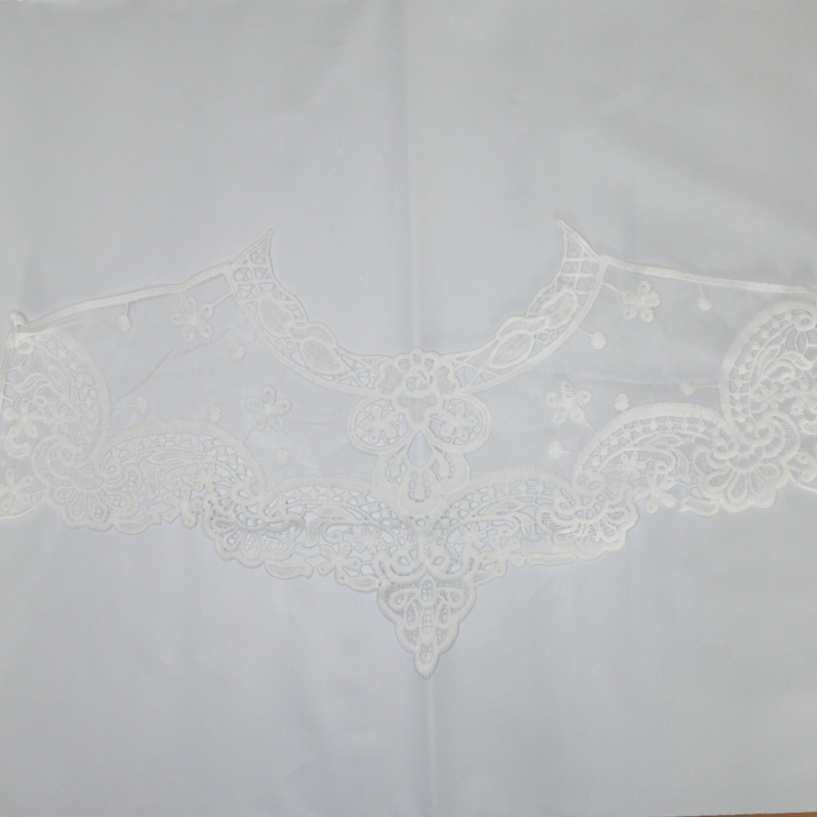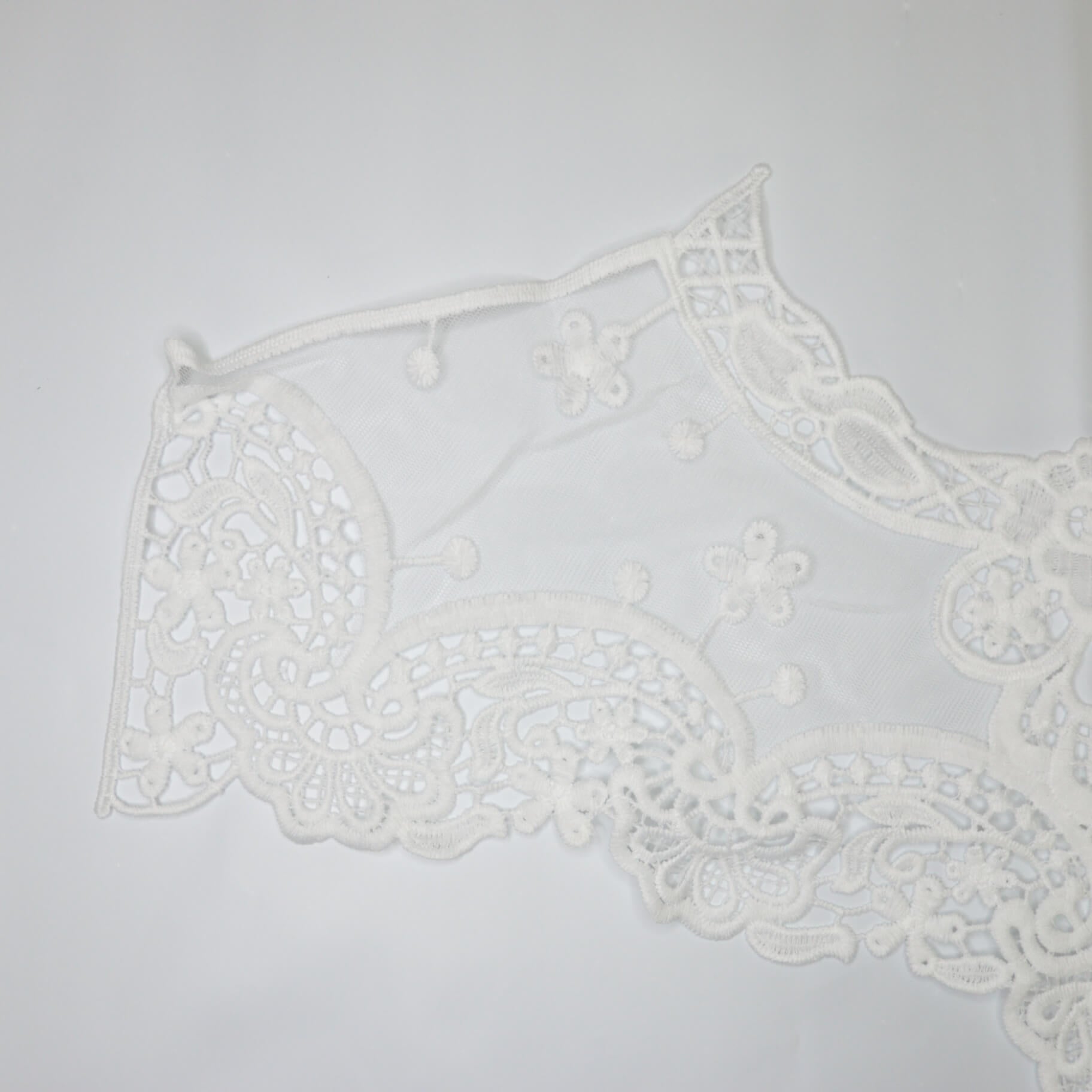Add delicate elegance to any outfit with our White Lace Collar Embroidery Applique. Made with high-quality materials, this applique features intricate lace and embroidery details. Perfect for adding a touch of sophistication to dresses, blouses, and more. Elevate your wardrobe with this versatile and timeless accessory.